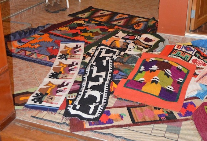 Within days of our arrival, before we understood that door-to-door salesmen are the norm here, we opened our door to Alex, the rug guy. We then let him in because he invoked the magical words “Shauna and Max,” the prior occupants of the home. They had told us about Alex and said that he offered good rugs at good prices, so we took a look. It helped that Alex speaks good English, which seems pretty amazing for a guy from the high Andes who goes around the country peddling his rugs. Alex arrived on foot pulling a cart with a bundle of rugs that easily weighed 100 pounds. If we understood correctly, Alex lives south of Lima in the Huancayo Region at an elevation about double ours. So we are barely in the mountains according to Alex.