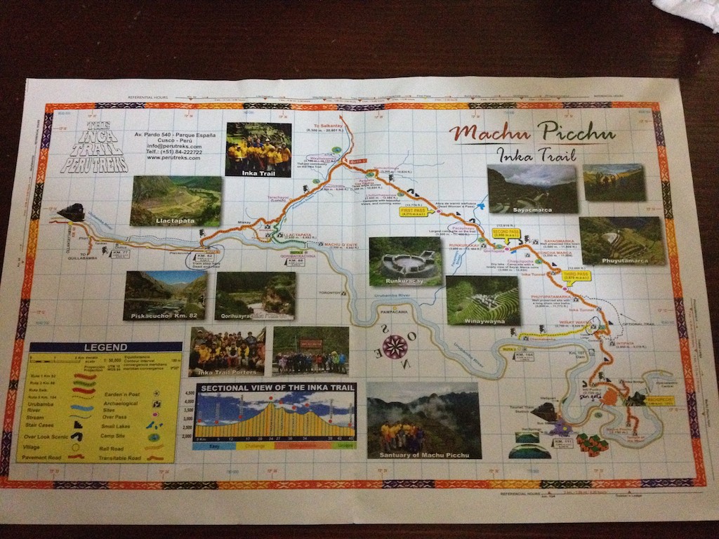 Trek map Published October 15, 2014 at 1024 × 768 in Hiking to Machu Picchu Part I – Preparation ← Previous Next → Trek map